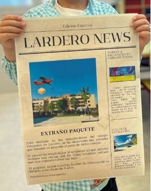 Nos enteramos por un periódico que esta semana una avioneta sobrevoló nuestro cole y dejó un paquete a nombre de las clases de 4 años, ¿Qué será? ¡Inmediatamente salimos al patio para comprobarlo!