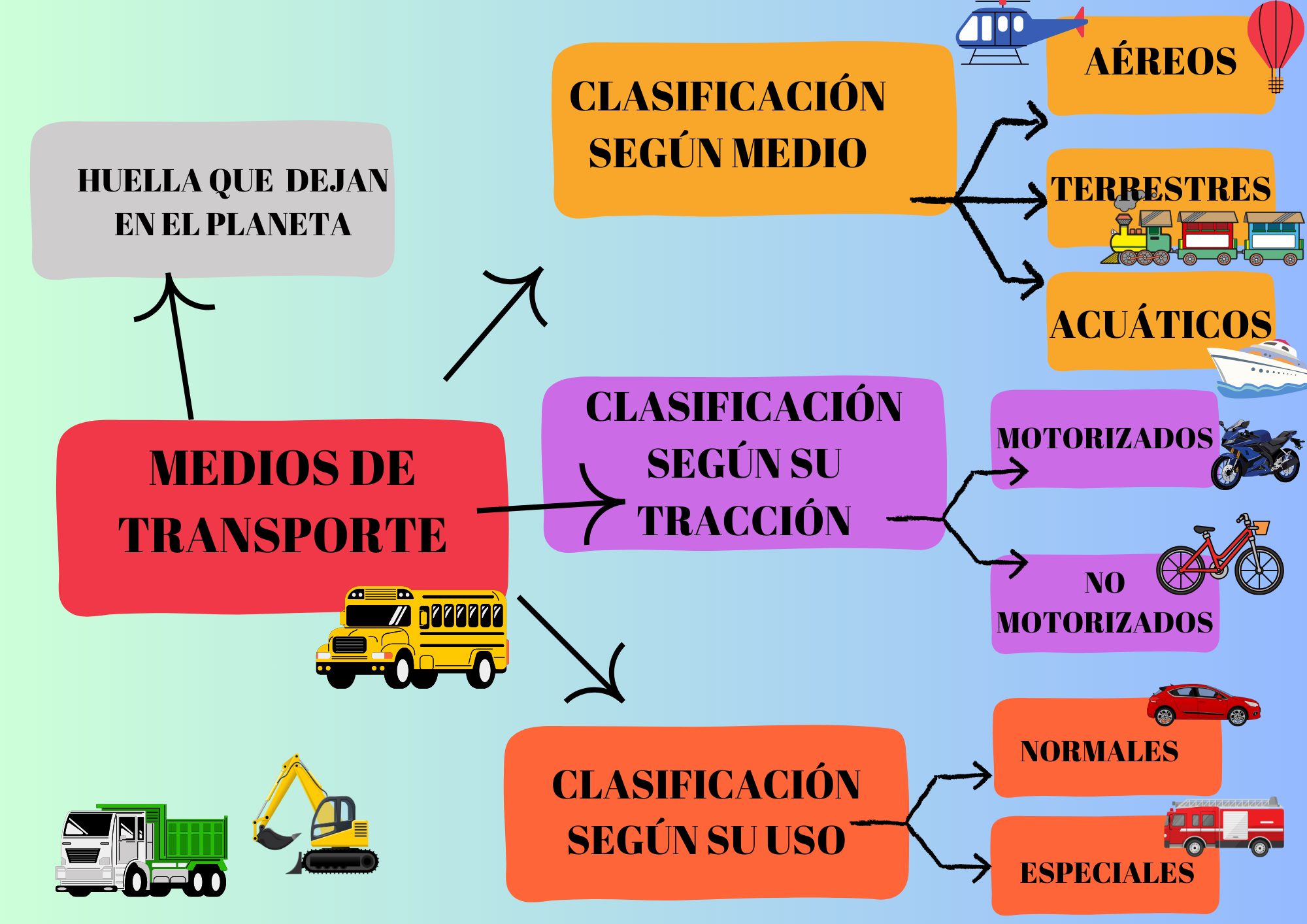 - Sabemos clasificar los medios de transporte en aéreos, terrestres y acuáticos,