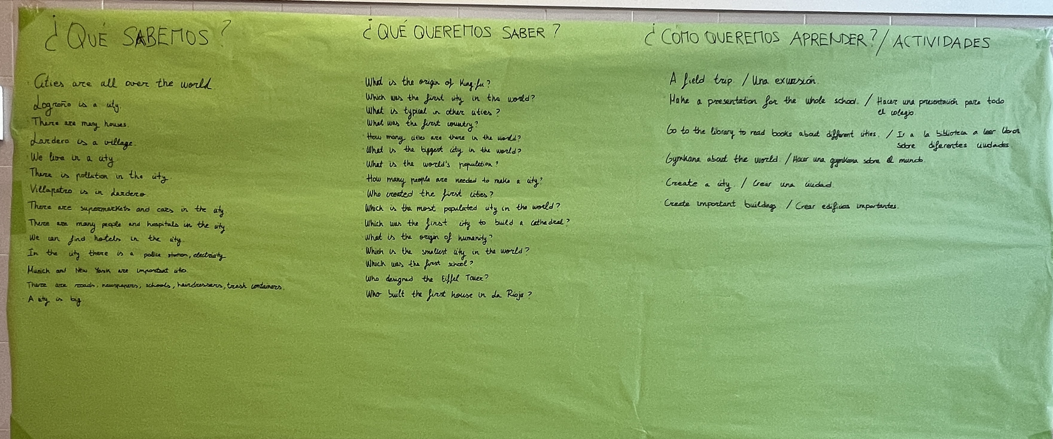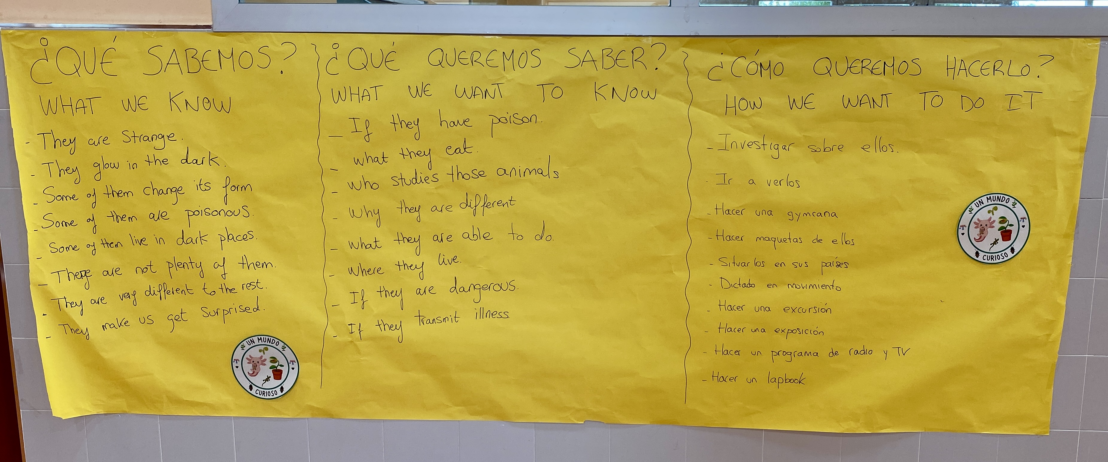 Para terminar nuestra actividad motivacional, completamos el mural sobre qué sé, qué me gustaría saber y cómo me gustaría aprenderlo. ¡Han salido cosas muy interesantes!