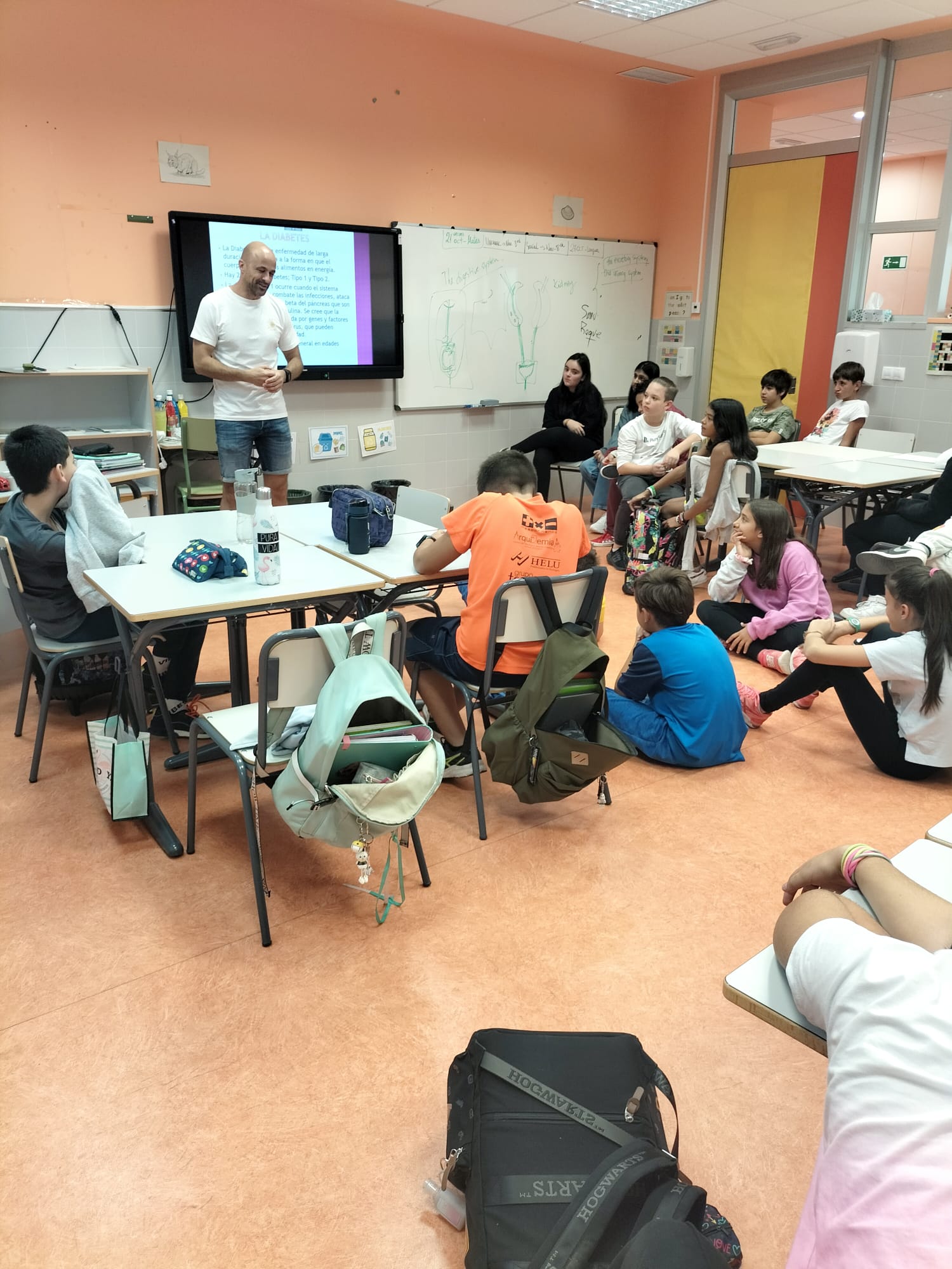 Hoy ha venido a 6° de Primaria Javier Ortega Garatea, padre de Naia, quien nos ha explicado qué es la diabetes, qué es la insulina, cómo controla sus niveles de glucosa y qué tenemos que hacer para ayudar a una persona con diabetes. ¡Muchas gracias!