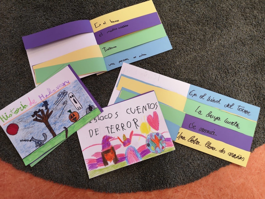 El otro día, leímos "Una mariposa sobre un sombrero" de Bruno Gibert y hemos realizado nuestros propios libros de cuentos, cortos y locos.