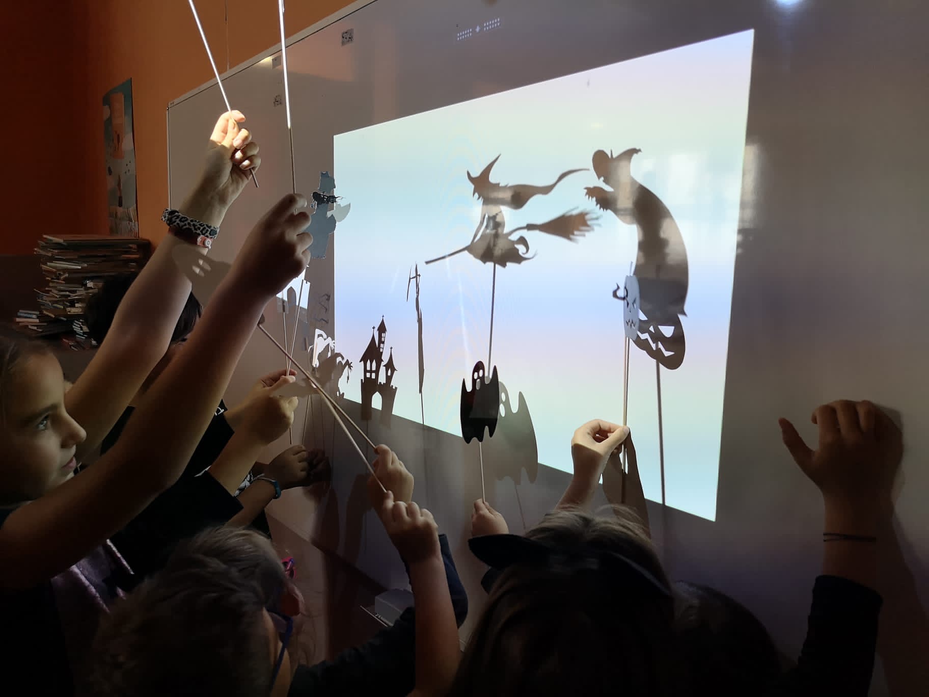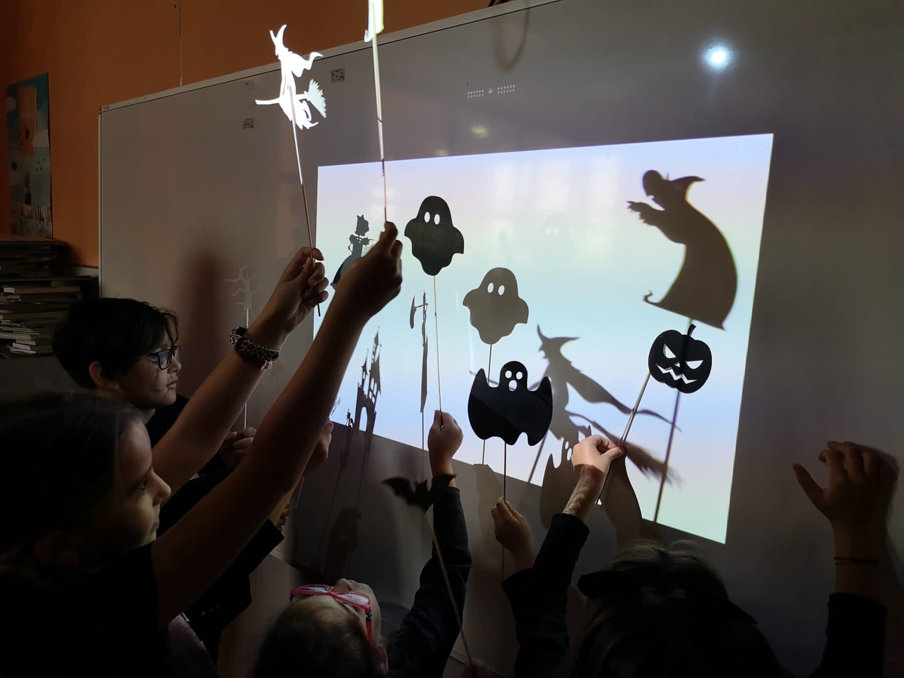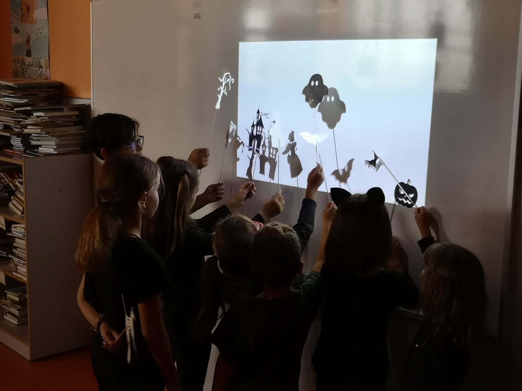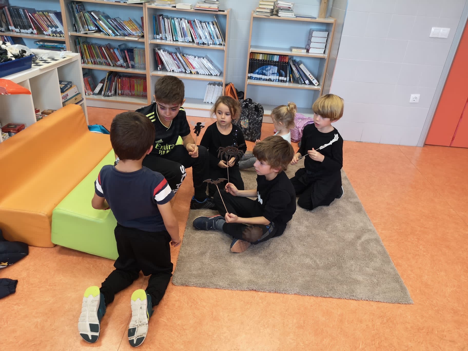 El pasado 28 de octubre leímos "El gran concurso de monstruos", aprovechando que se celebraba Halloween en el cole. Luego disfrutamos de dos cuentos terroríficos, inventados por los propios niños y niñas, que representaron con la ayuda de sombras chinescas.